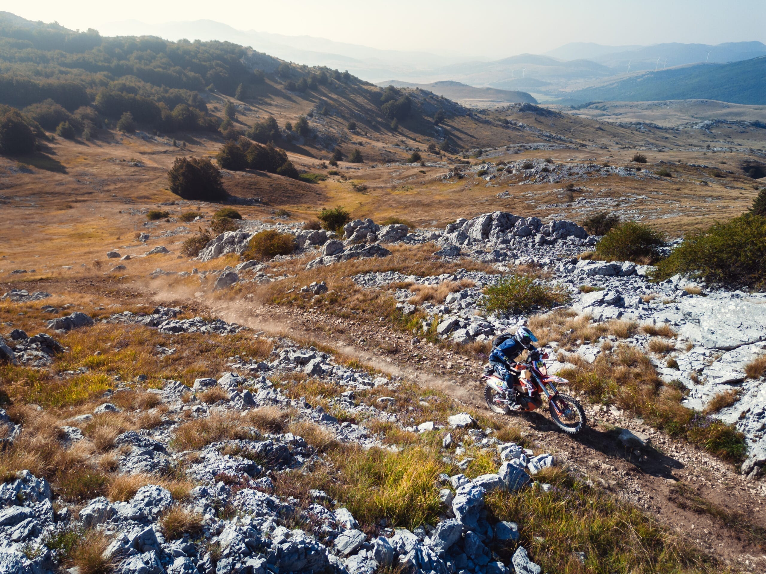 The one you have. You can complete the Dinaric Rally on almost any off-road motorcycle and we recommend using the one you are most comfortable with. A converted Enduro bike will be easier to handle, but far less comfortable to ride all day on. A bigger bike will have a harder time in some of the harder sections, but Dinaric Rally is not a hard enduro event, it’s a long-distance cross country race in rocky terrain. Bikes over 1000cc need a very experienced rider as they will generally have a much harder time.